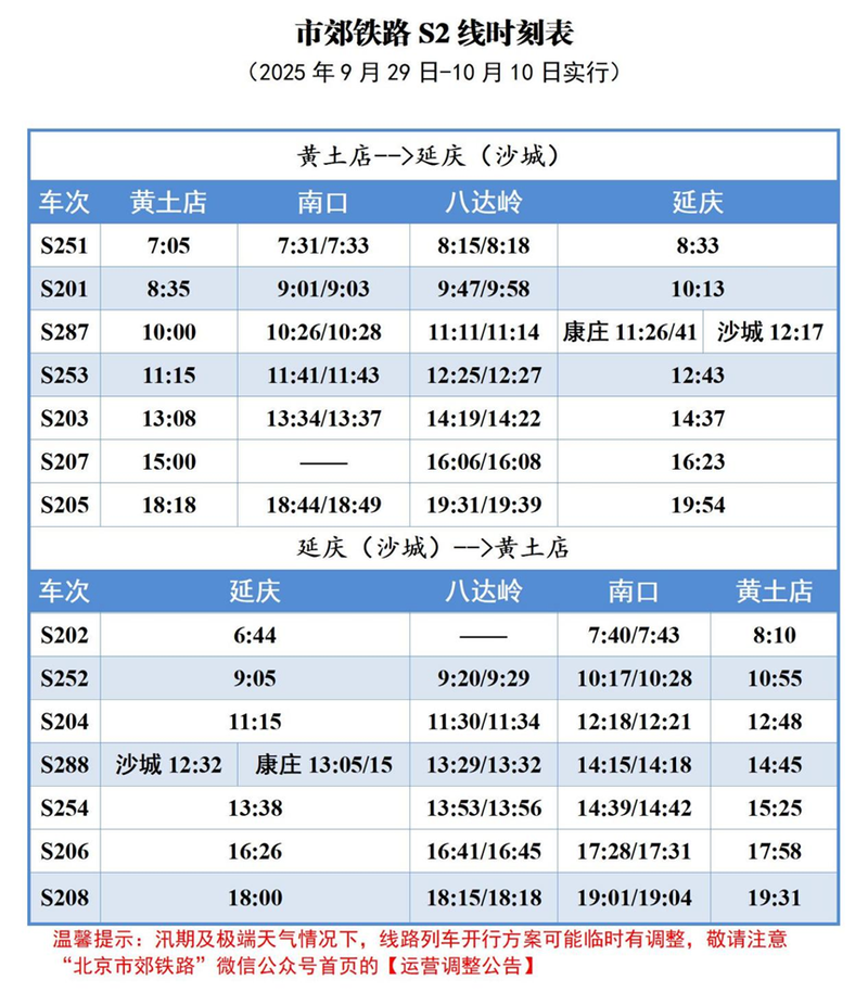 根据@beijing郊区金属的说法,北京新闻是为了满足公民在“中期音乐节和国庆节假期”期间以计划的方式购买门票的需求,Huairou-Miyun Line和Tongmi Line暂时调整并增加了铁路前销售栏杆; S2线临时开放了火车以提高运输能力并确保公民的旅程,具体步骤如下:首先,Huairou-Miyun线临时调整了票务分配比率,以满足乘客计划的旅行需求。从10月1日到2025年,总共6天,Huairou-Miyun线列车的乘客负担为643人。其中,铁路机票系统分配比率恢复到了原始状态,火车已经被评为载有643名乘客,其中300名在铁路票务系统中出售了300名乘客,在铁路运输AFC系统中出售了343个乘客。在假期期间,门票有点紧。确保gOOD旅程,建议您提前12306年购买门票。成功购买票后,获得郊区铁路!第二个将暂时调整汤米线票的比例,以满足计划的乘客旅行。 From October 1 to 6, 2025, for a total of 6 days, the rated passenger capacity of Tongmi line trains remained unchanged, of which the railway ticket system was sold at 450 and the Rail Transit AFC system was sold at 110. From October 7 to 8, a total of 2 days, the rated passenger capacity of tongmi line trains trains, remained unchanged, of which the railway ticket system was sold at 460 and the rail transit AFC系统被卖给了100。假期“中春节和国庆节”之后,分配汤米线票的比率恢复到了原始状态,火车被评为携带560名乘客,其中400辆在铁路票务系统中出售,160辆被出售给铁路交通运输AFC系统。门票有点紧张在假期。为了确保良好的旅程,建议您提前12306年购买门票。成功购买票后,获得郊区铁路!第三,将火车添加到S2线中,以提供足够的容量保证。从9月29日至2025年10月10日,总共12天,S2将每天发射7双火车。火车的运行时间显示在下图:从10月11日开始,S2将从周二至周四继续进行火车运营计划,再到周五至周一的7对火车。编辑Mao Tianyu